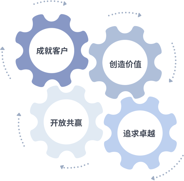成就客户是一切决策的出发点,创造价值是衡量所有工作的标准,追求卓越是918天堂搏做事做人的态度,开放共赢是918天堂搏的格局也是最终的结果。价值观的齿轮环环相扣,推动着组织里的每个人不断向前。